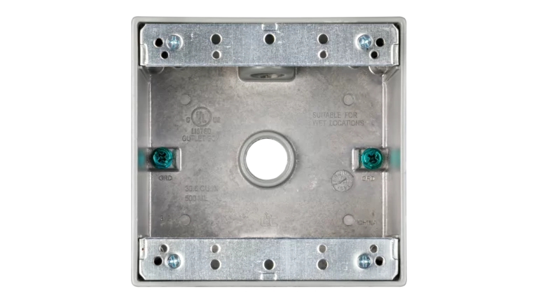 Outdoor Weatherproof Bell Box, Die-Cast Aluminum, 1-Gang and 2-Gang Options, 1/2" Threaded Conduit Outlets, NEMA 3R, Gray Powder Coat